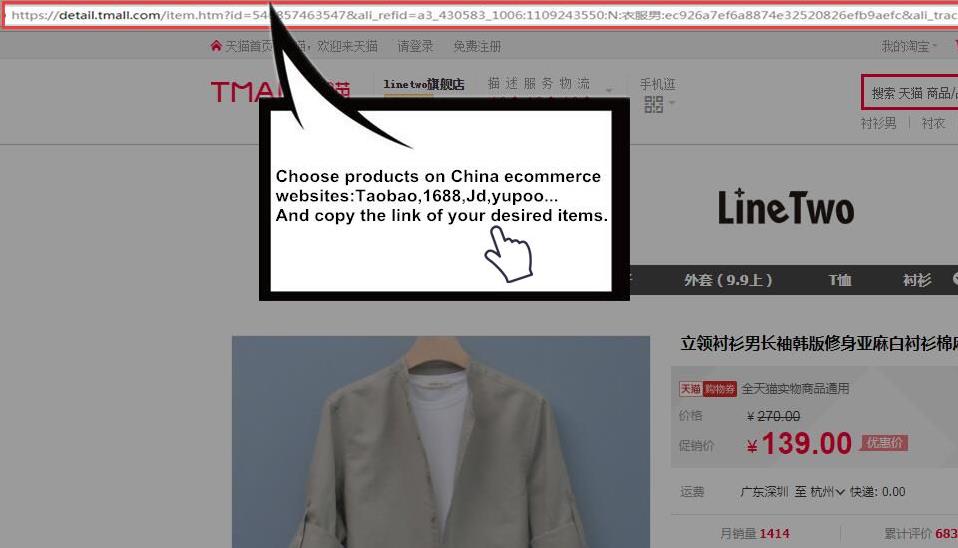 Choose products from Chinese ecommerce websites and copy the link of your desired item. Paste the link in the CSSBuy search field.